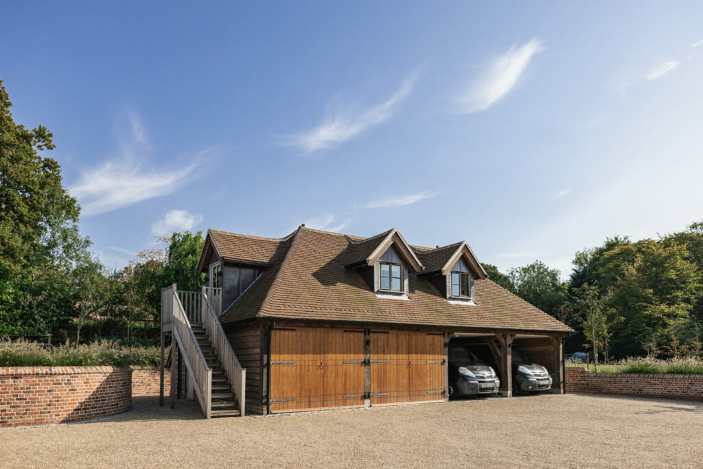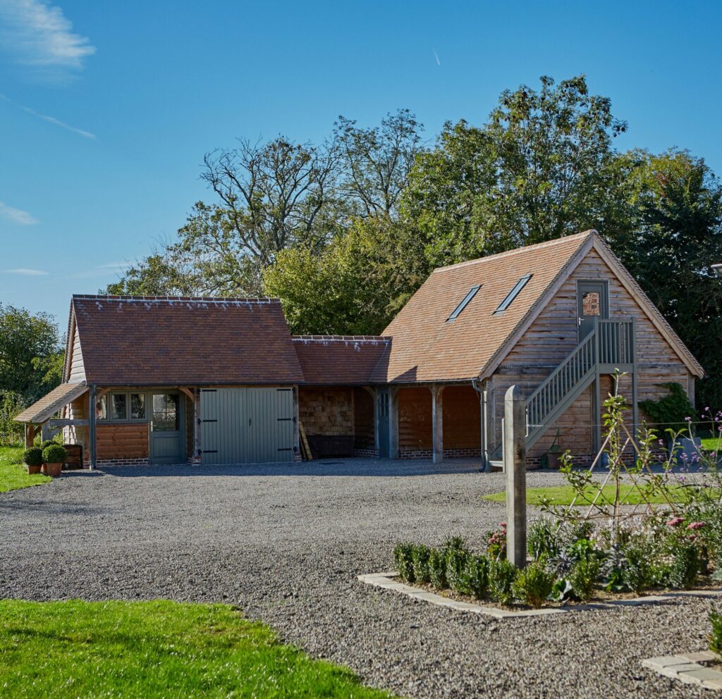 Our outbuildings use the same materials and specification our our homes – only the finest Restoration Grade green oak, highest quality weatherboarding with roof coverings to suit. The design options are endless, you can chose to work with our ‘Classic’ range which works on the premise of traditional bays in a variety of dimensions, or commission us to create a bespoke structure. Stair cases, dormer windows, log stores, doors and windows, open or enclosed bays – the possibilities are endless.