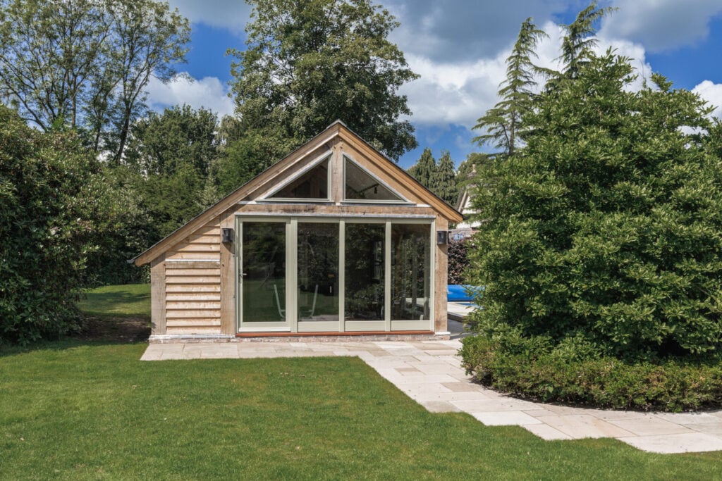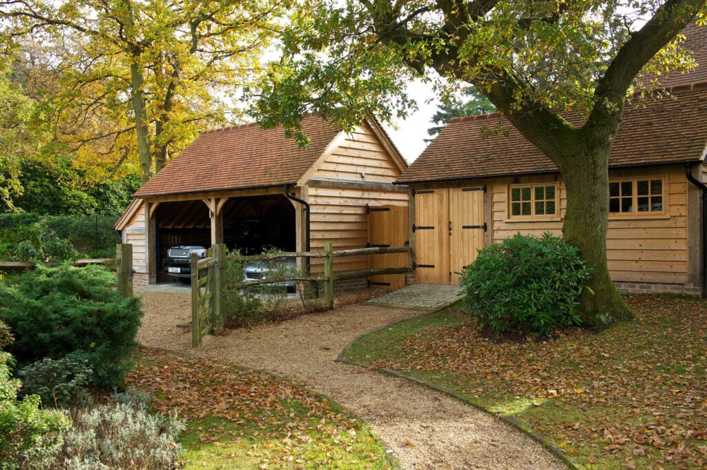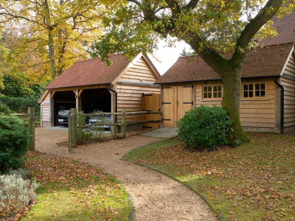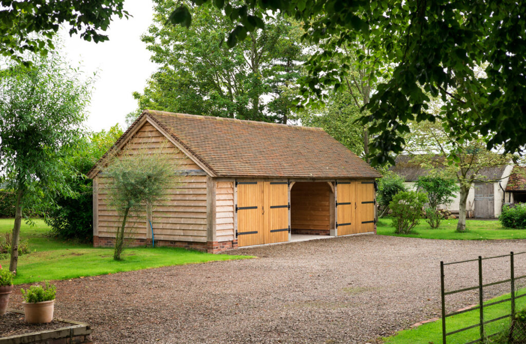 Our Classic model 1 has been designed to meet Permitted Development requirements, which means planning approval might not be required. Our Classic model 2 is similar in style but has a deeper footprint and higher ridge line. Both use a traditional ‘cat slide’ oak frame – with low eaves to the rear – to create generous and practical proportions, without becoming too imposing. Both are ideal for all sorts of uses and work well as garaging.