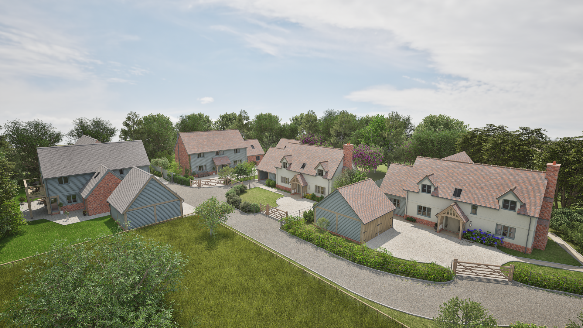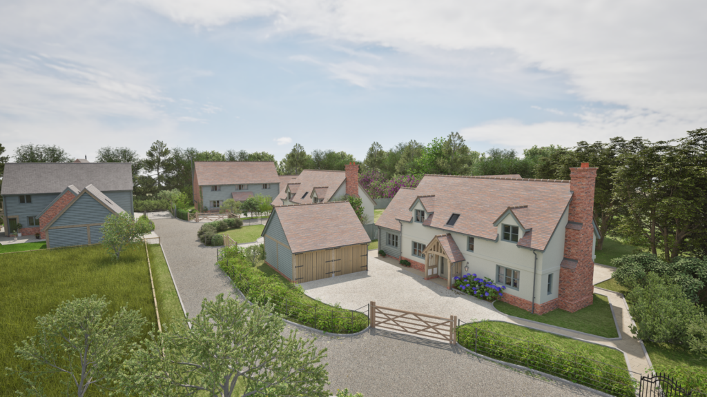Surrounded by woodland, the site is in a unique location on a former tree nursery and so benefits from mature trees surrounding the properties. Border Oak have undertaken the detailed design and planning for each house using our own material palette and renowned detailing – to ensure the aesthetic and quality aims of the overall scheme are achieved.
