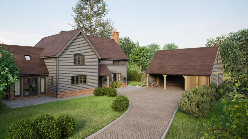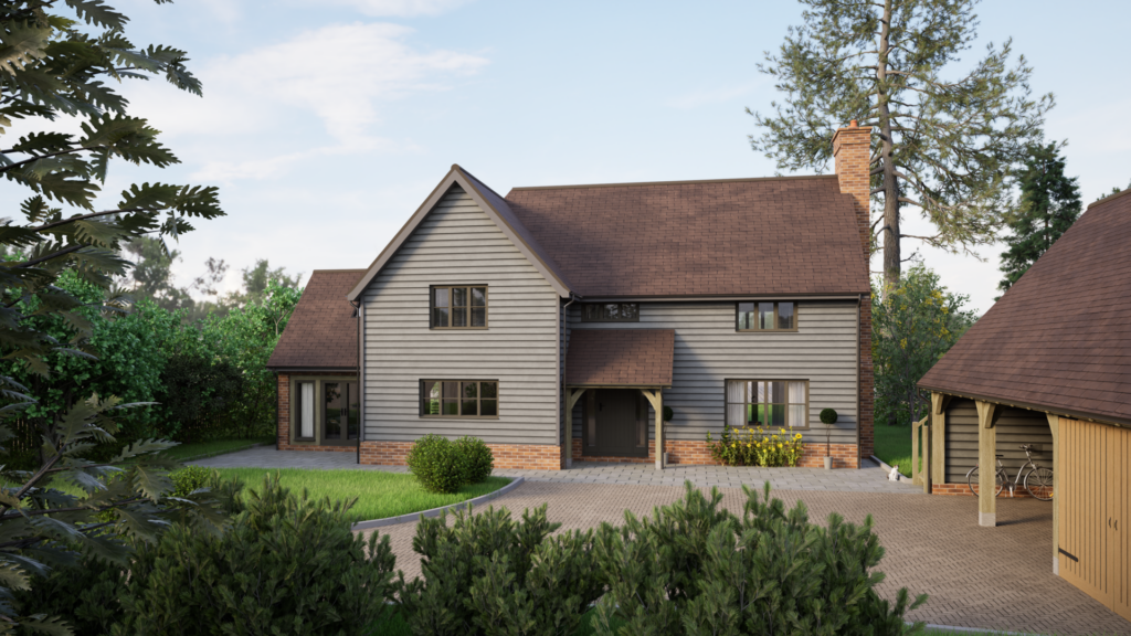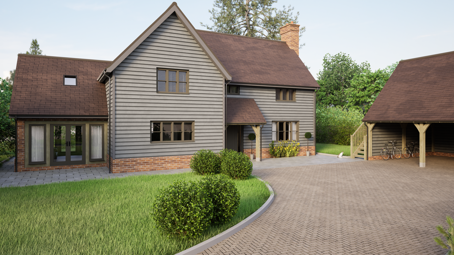An individual plot, next to a small development of just four Border Oak homes completed a few years ago. The site is private with a very generous garden.