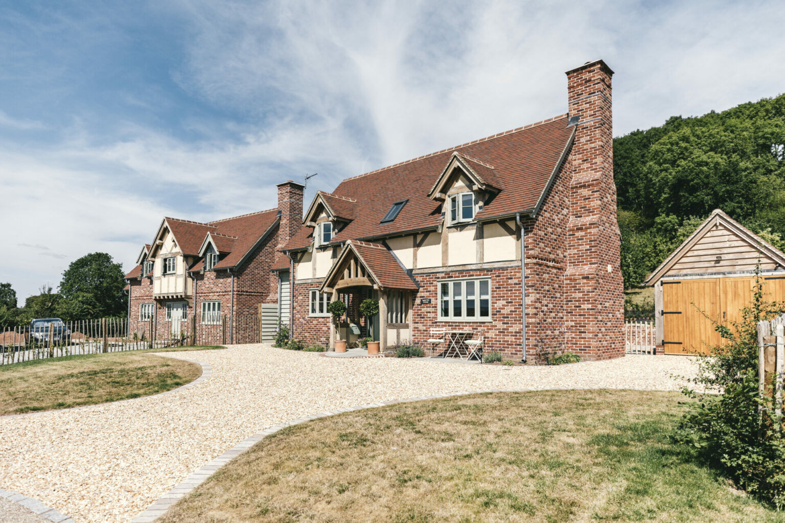 Border Oak were approached by the landowner and obtained Detailed Planning Permission on their behalf. Border Oak then sold the plots on behalf of the landowner, and undertook all the construction and landscaping work, with the landowner retaining a plot on which they built a Border Oak house for their family.