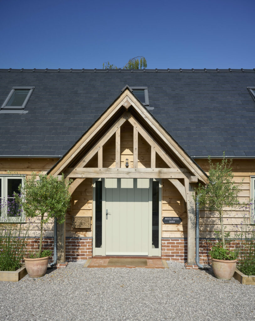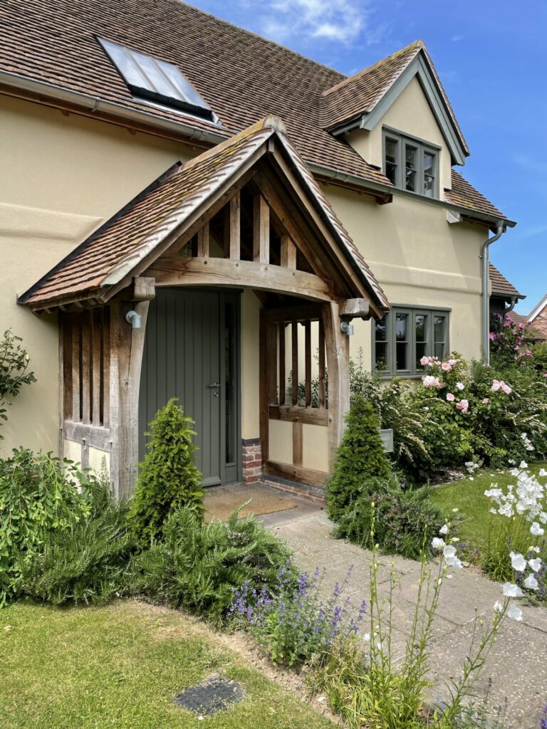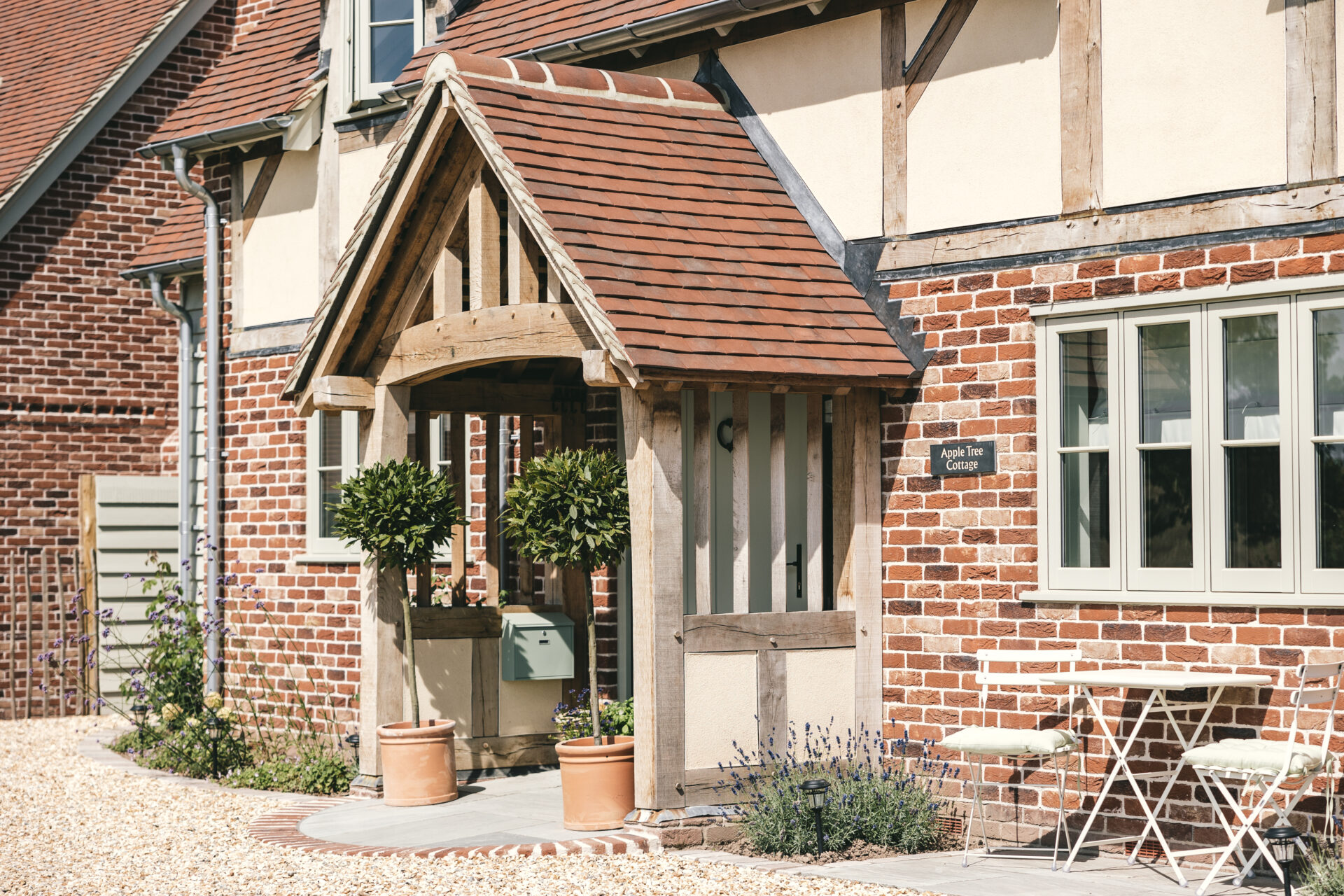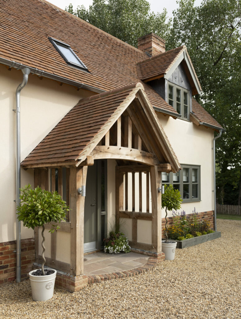 The Border Oak porch was designed by our founder John Greene, for his daughter Merry, inspired by the lych gate of the church where Merry and Ben married. The young couple’s first home – Pearmain Cottage – featured on Channel 4’s Grand Designs back in 2003 with the porch taking centre stage. Since then our porch portfolio has grown – yet our commitment to quality, detail and craftsmanship have been faithfully maintained.