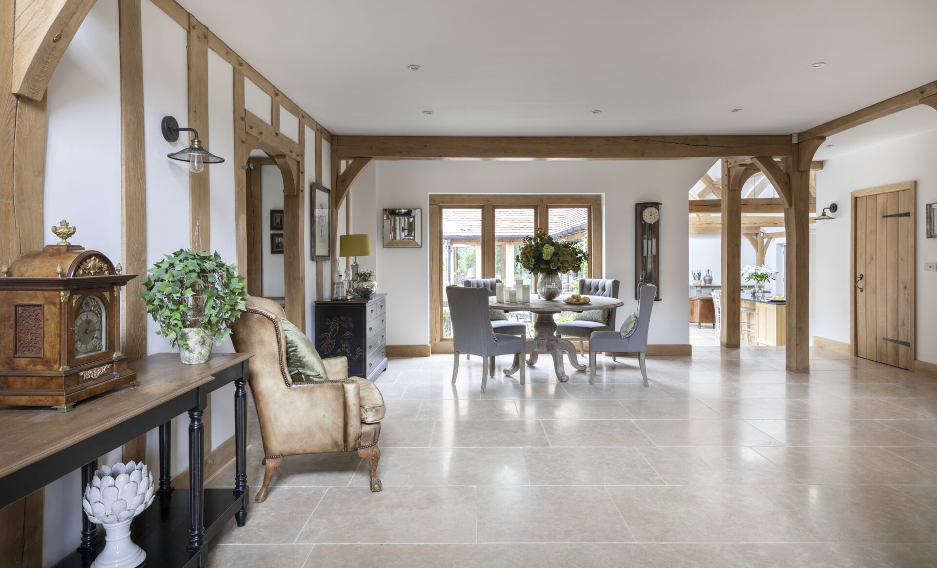 FEATURES: Fully Exposed Oak Frame, Stone Detailing, Bay Windows, Bronze Casement Windows, Yoga Studio, Vaulted Kitchen, Oak Framed Garden Room