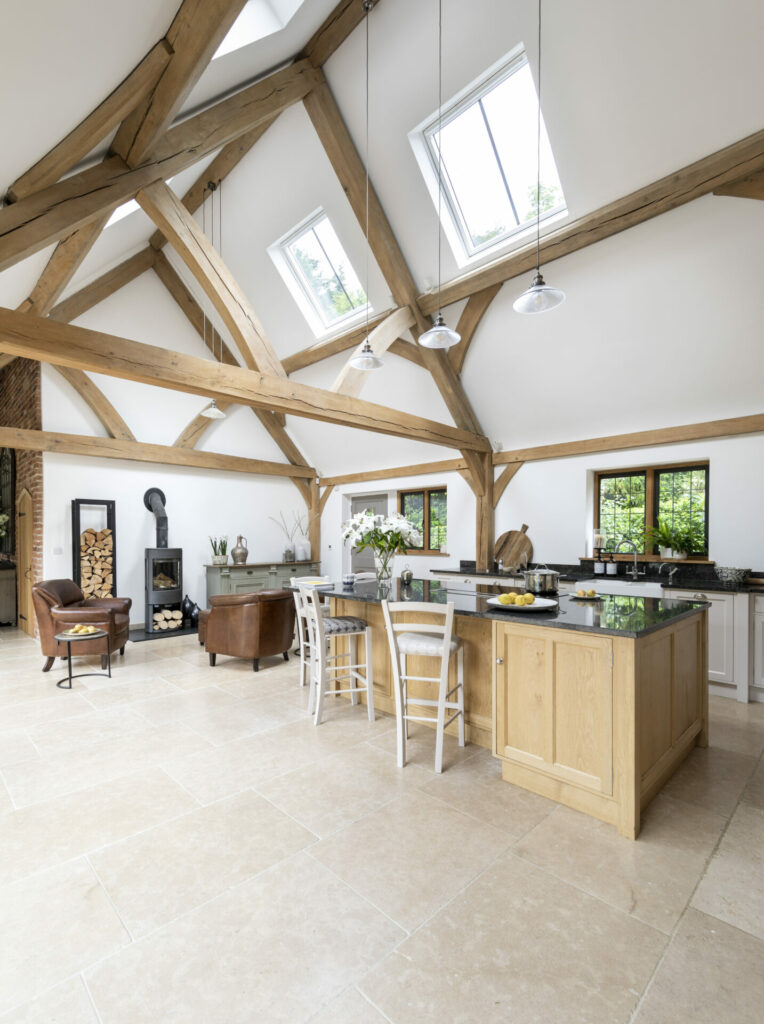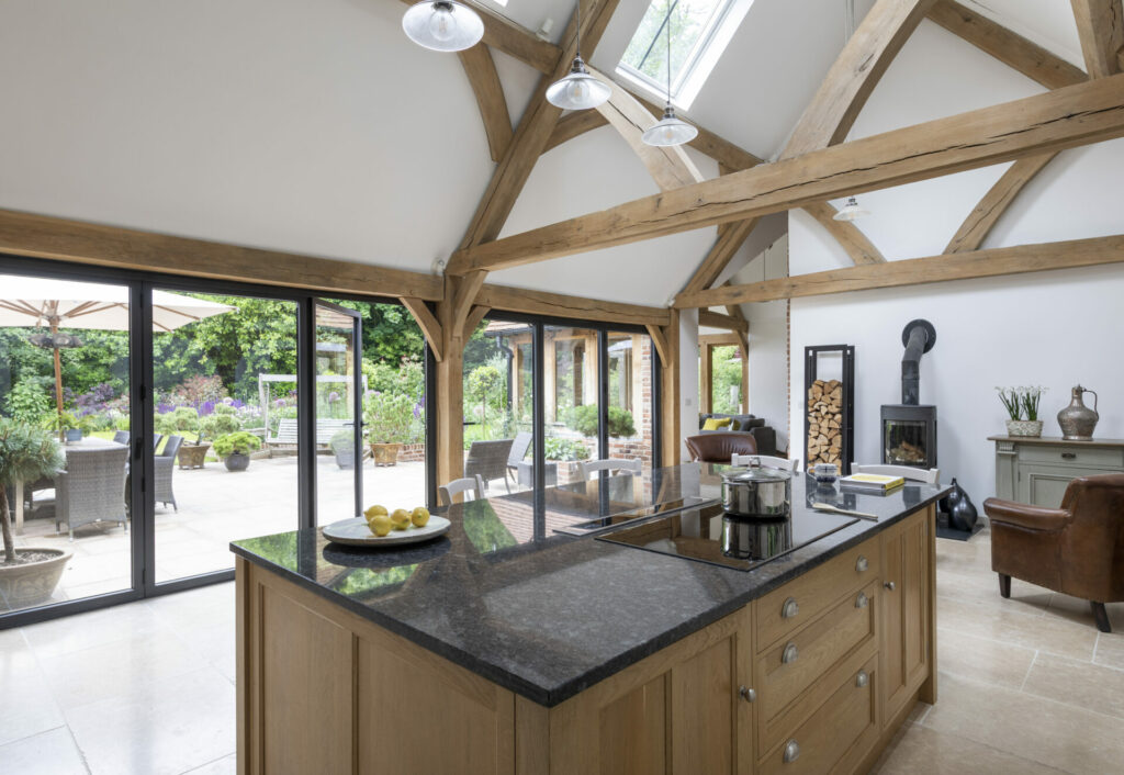 Working with a local architect initially our clients navigated the complex local planning situation, eventually securing approval on the basis of the aesthetic upgrade offered by oak framing. Planning came with many stipulations and constraints and Border Oak were approached to pick up the project and translate the planning drawings into a workable design.