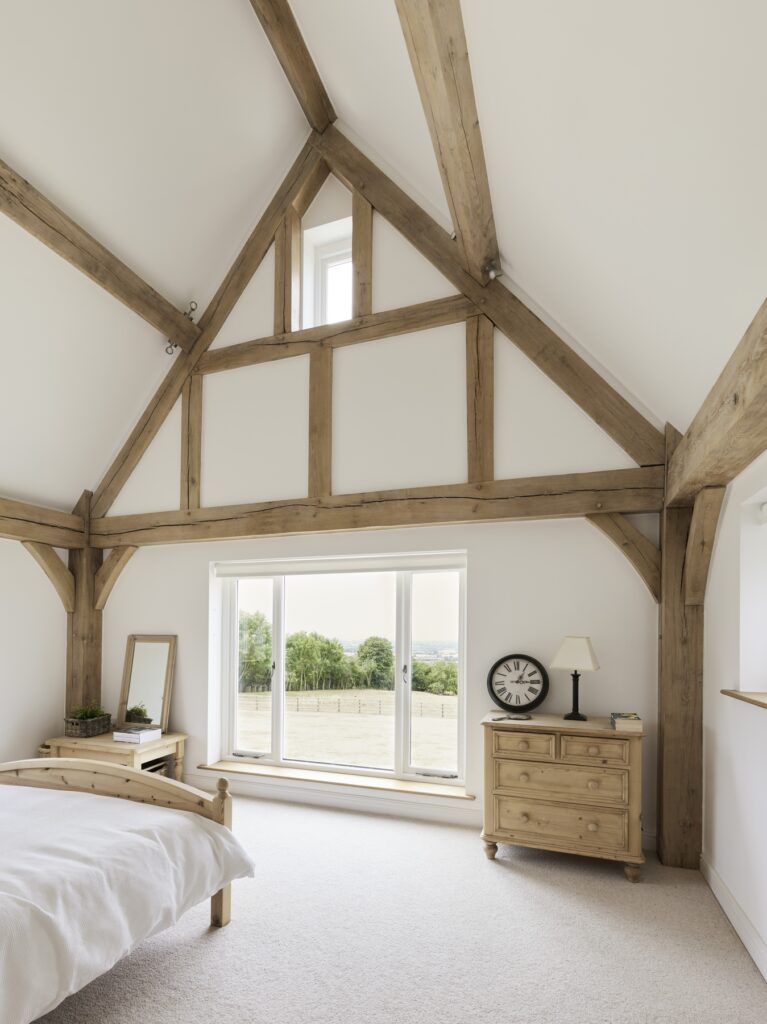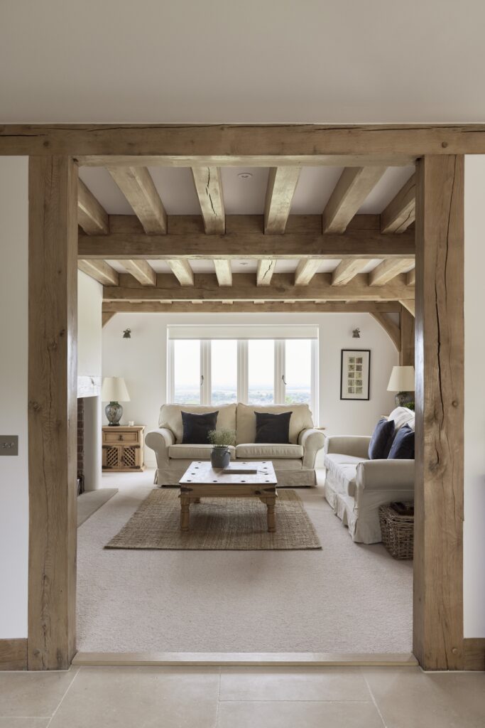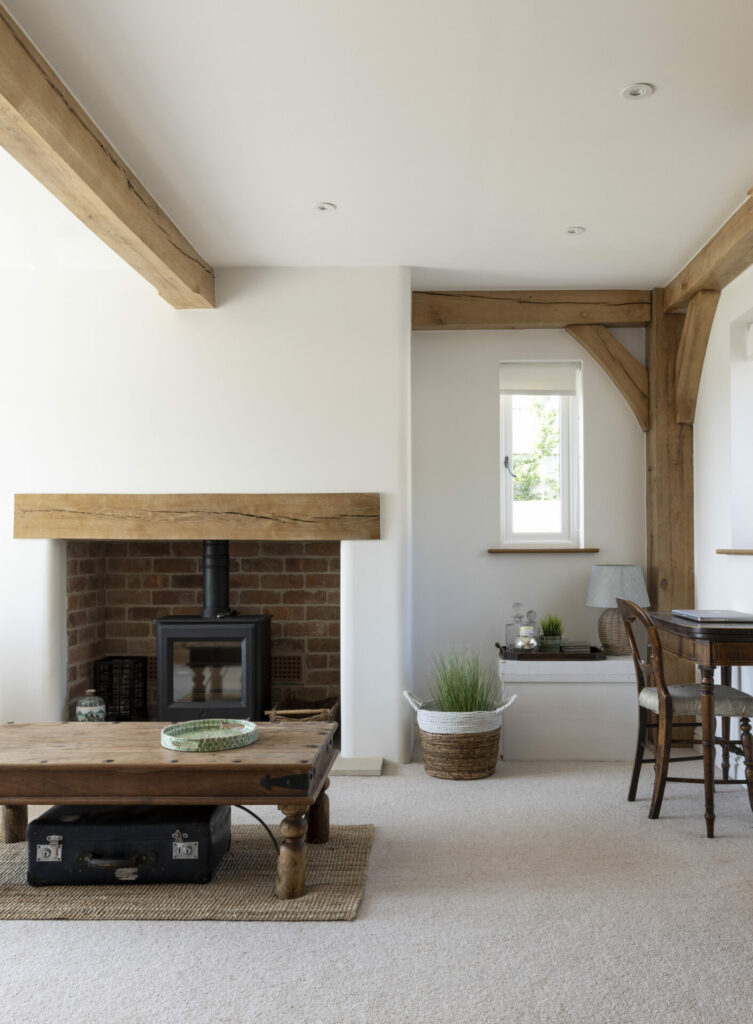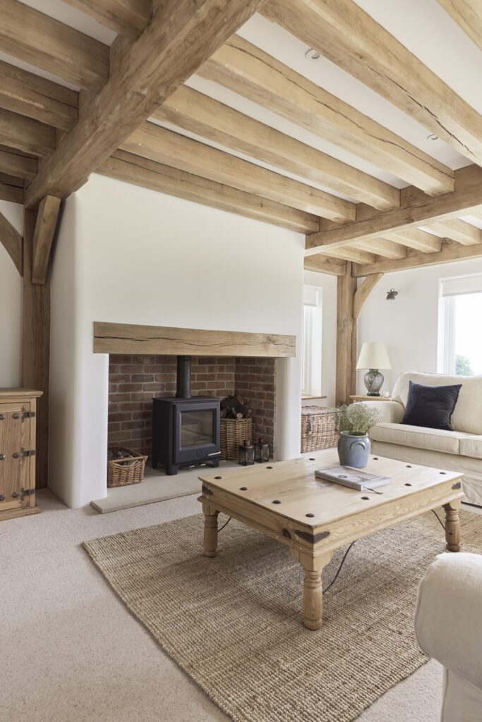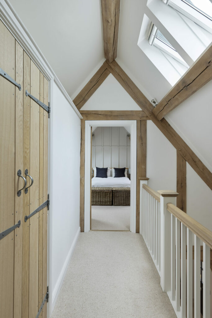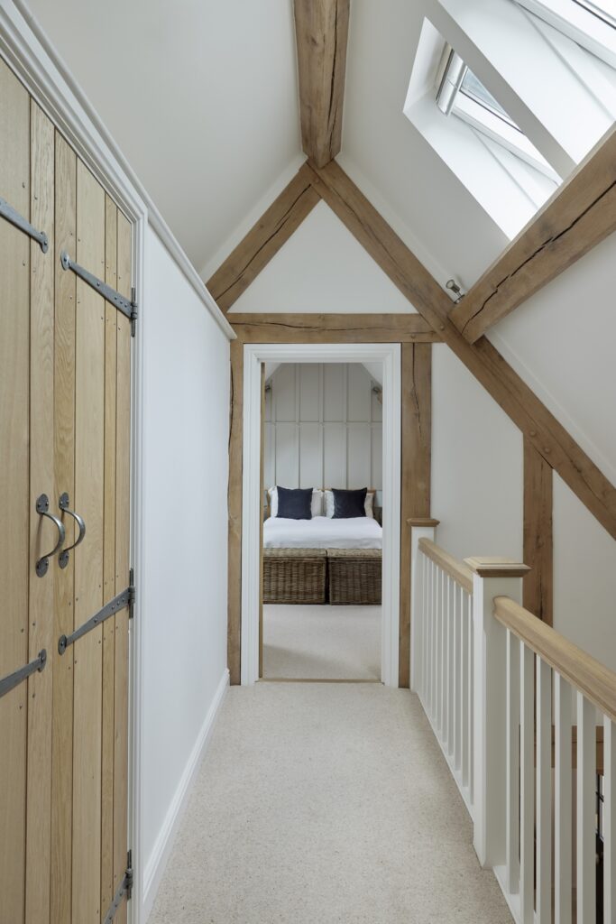 Border Oak also designed and built a range of beautiful outbuildings to complement the main property – a stand alone annex barn with extra accommodation, a cinema and music room, together with a smaller barn for entertaining and a large garage with log store, storage, apple room and cider press. You can see the outbuildings here Annexes & Cabins