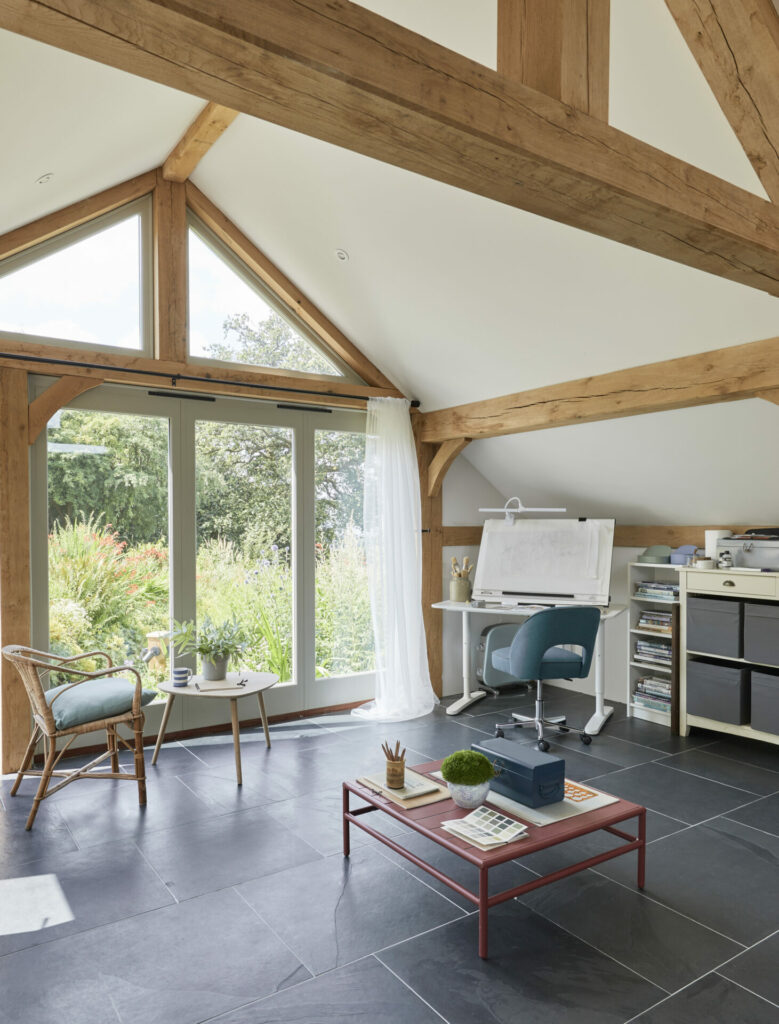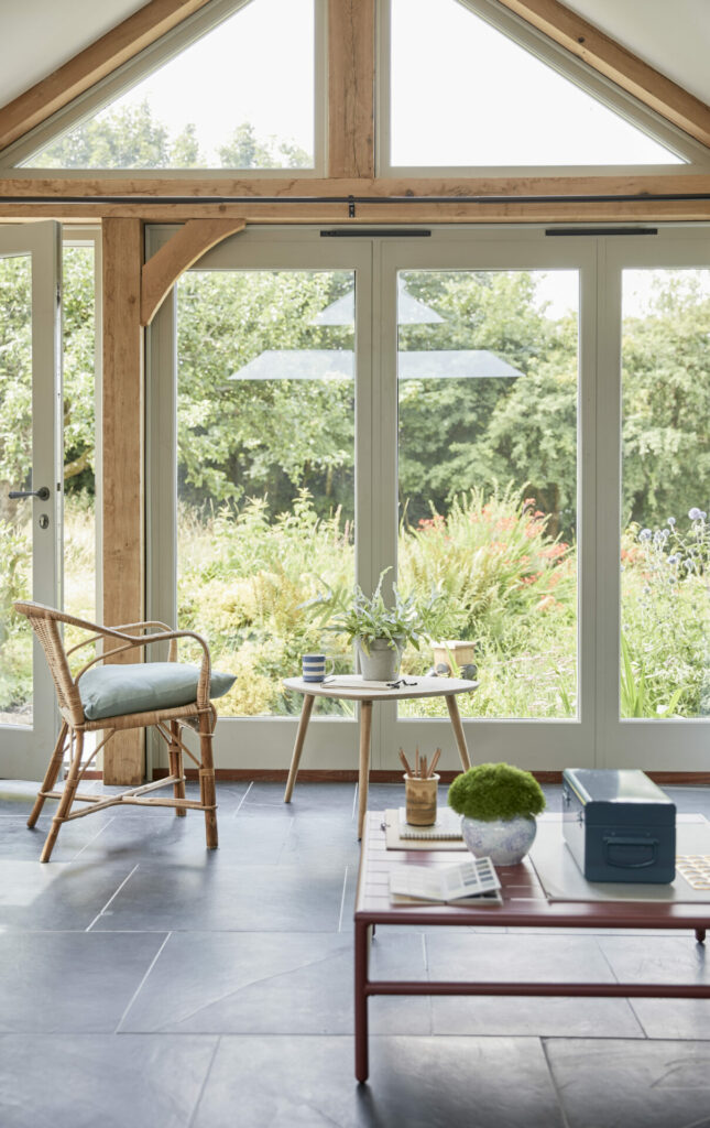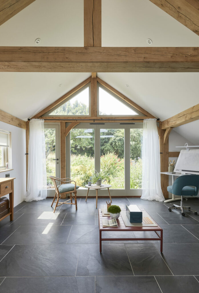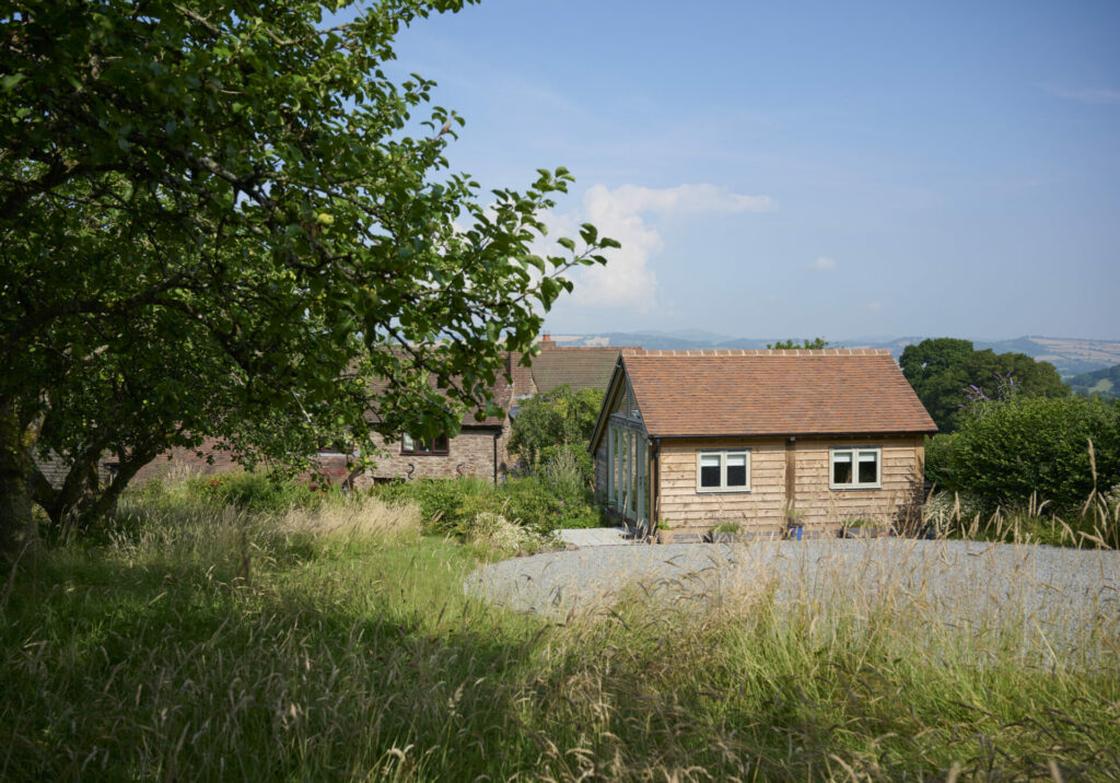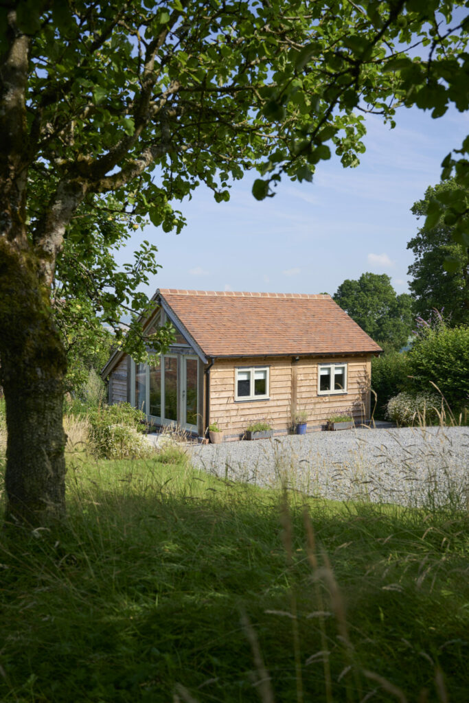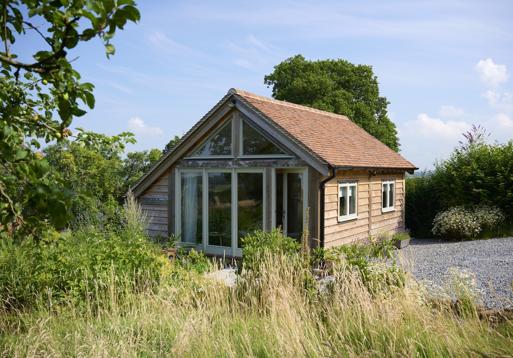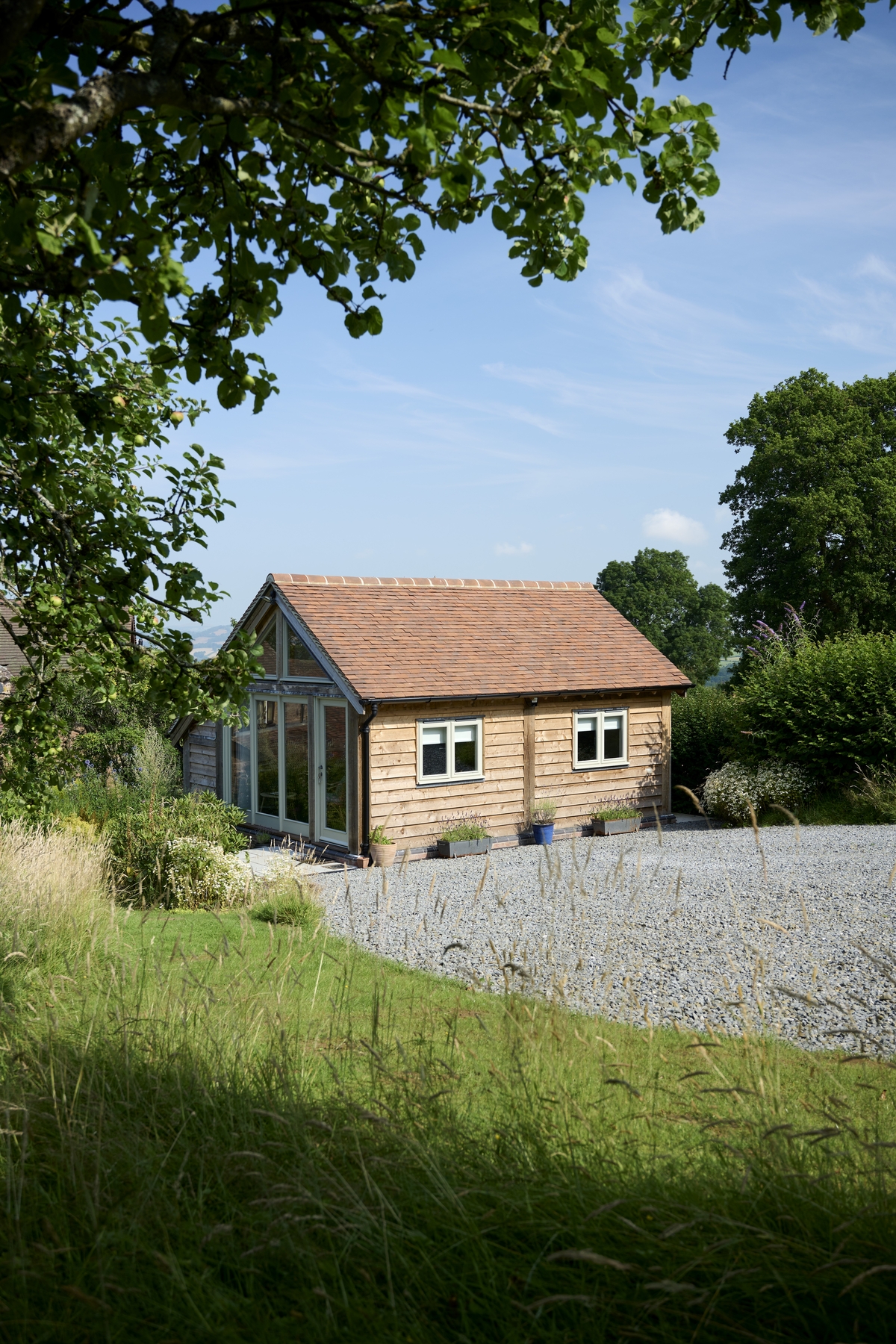 This pretty oak framed annex has been designed to gently nestle into a beautiful old orchard and provide a little extra space that can be used in lots of different ways.