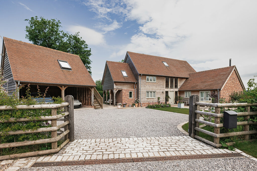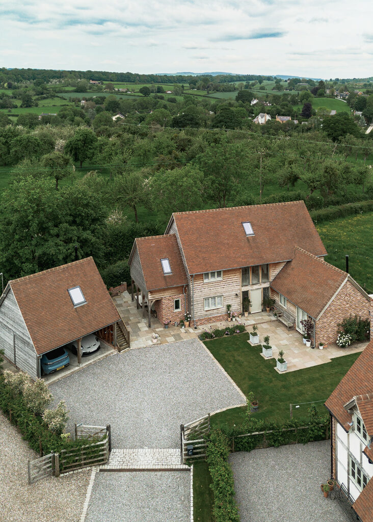 Border Oak found a redundant farm yard a short distance from a lovely village and secured planning for four bespoke oak framed homes, including the restoration and restitution of the whole site, to include the removal of all the old buildings and concrete yards, together with new biodiversity rich landscaping and four new sustainable homes that better suited the rural location and neighbouring traditional apple orchards.