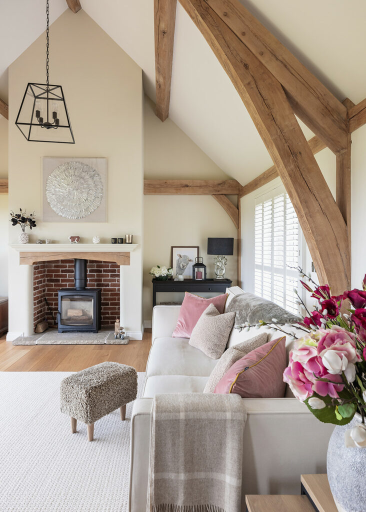 The hallway is a particular delight – with the handmade Border Oak staircase rising from the ground floor to the attic with gently curved details and generous landing and passing spaces, an architectural delight. As is the sitting room with a vaulted cruck frame, inglenook fireplace and