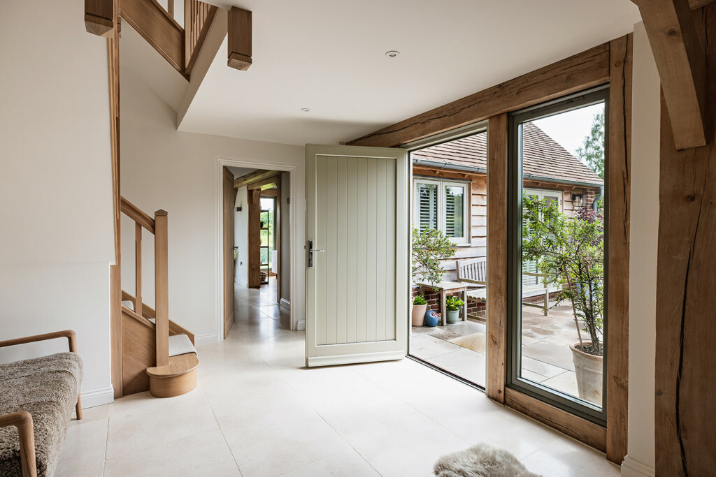 However the incredible end result is a testament to our clients resourcefulness and Border Oak’s unwavering determination to create an outstanding product amidst the confusion and ever changing restrictions imposed. Kimbolton Barn is a vernacular but contemporary home – welcoming and highly detailed, beautifully crafted from natural and sustainable materials, with a clever layout and amazing views.
