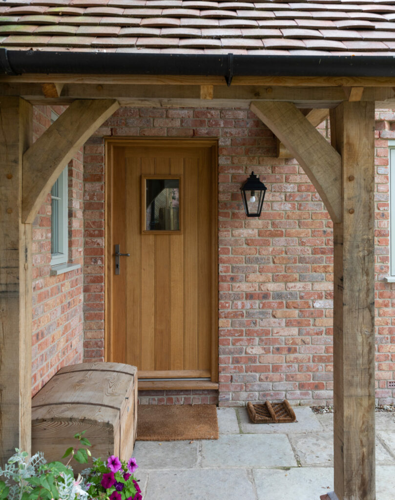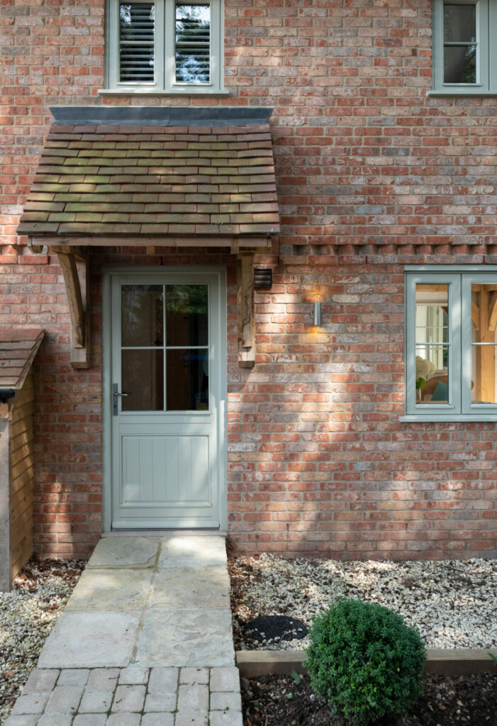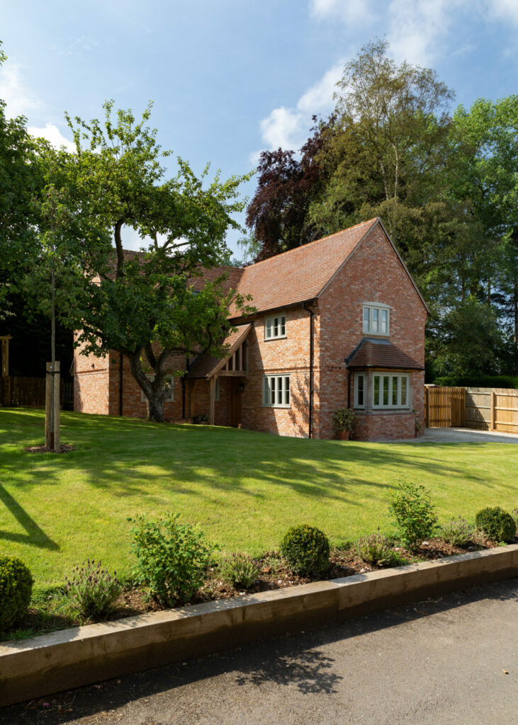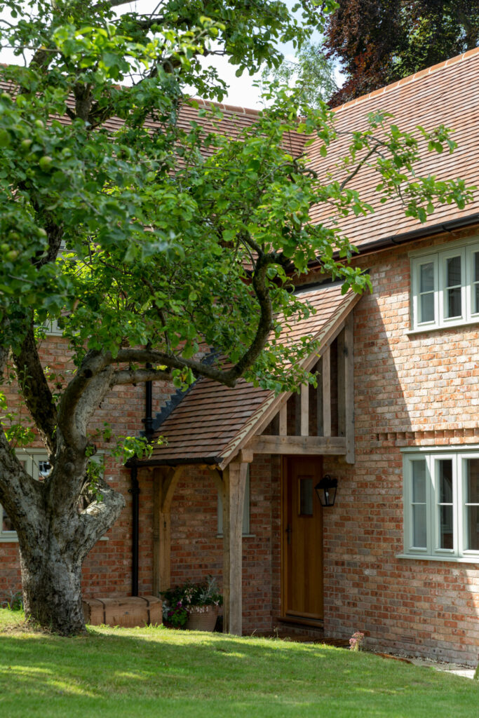A local brick was chosen for the external finish, to ensure it sat well within the neighbouring homes and satisfied the planners wishes. Traditional architectural details such as brick arches, dentil courses, bay windows and oak porches were introduced to elevate the elevations – and offer a hint at what lies within.