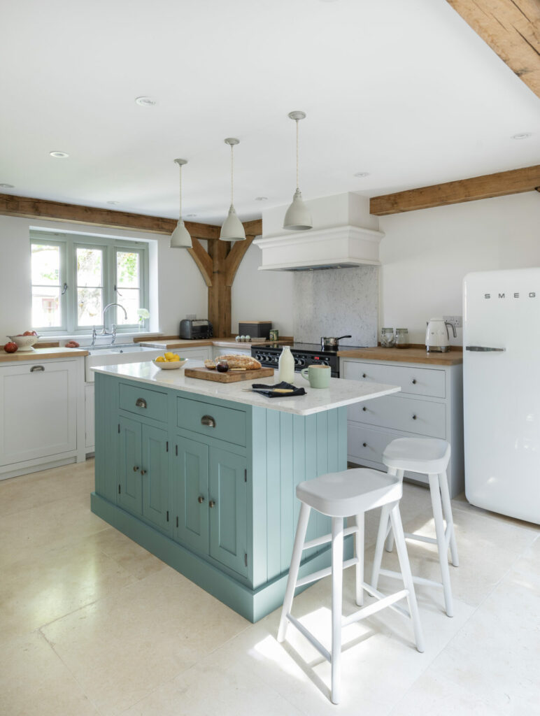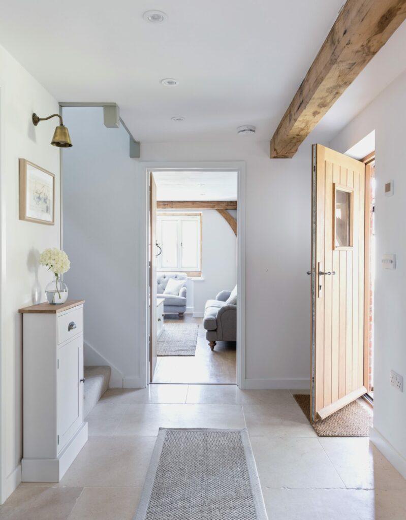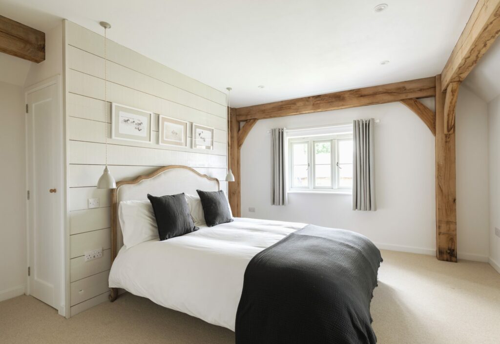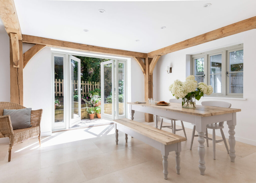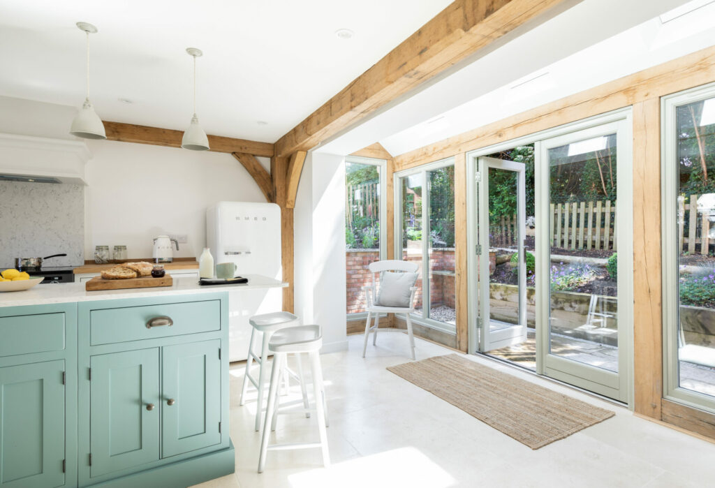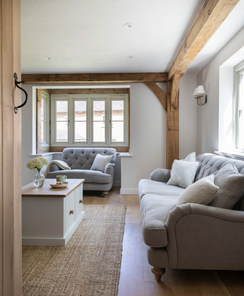 Internally the house is beautifully finished with a modern and timeless approach using a considered palette of light and neutral tones, punctuated with moments of colour but always allowing the oak frame to shine.